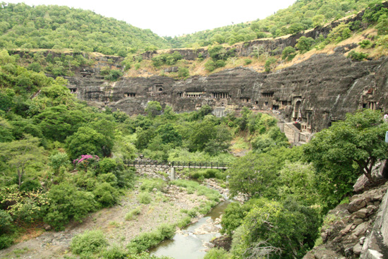 8th century Buddhist prayer hall, carved within the mountain at Ellora
