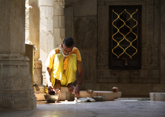 The vibrant Jagdish Temple shrine with heavily carved figures of Vishnu