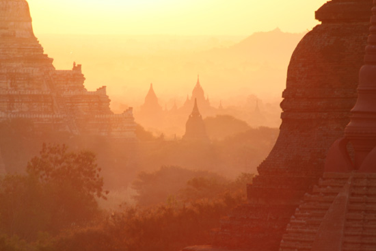 Lengthening shadows over Dhammayazaka Paya (in the background)